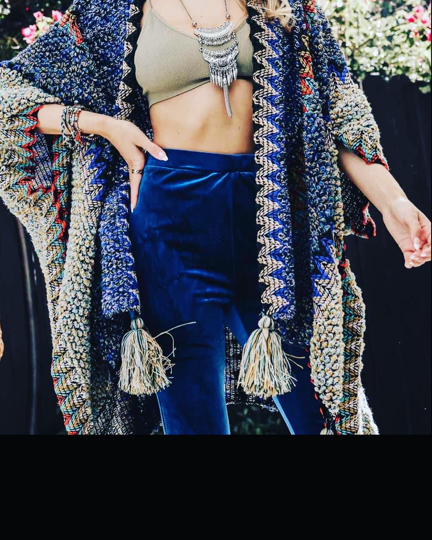 Gorgeous Cobalt & Taupe Chevron Crochet Tassel-Accent Ruana - Women